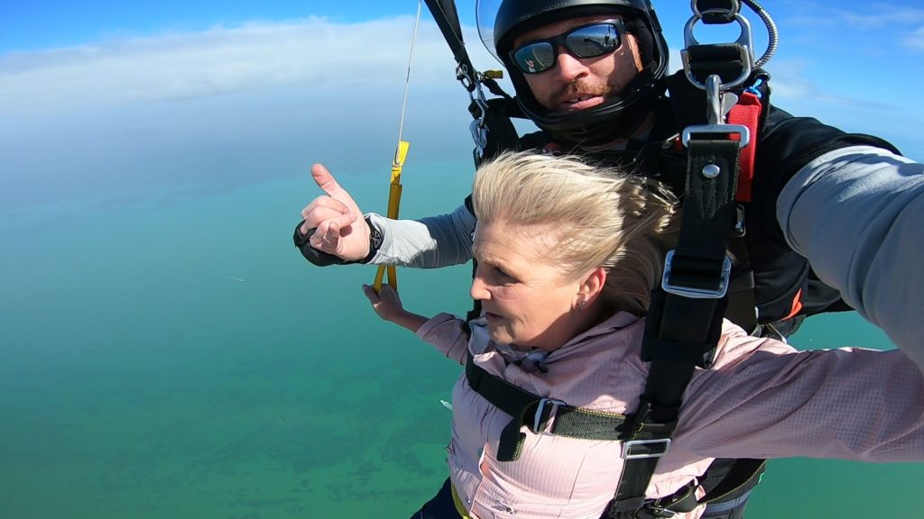 Jackie had never skydived before, and she definitely was a bit apprehensive about it, as most people are their first time around. It can be quite daunting to jump out of a plane at 15,000 feet in the air. It takes a lot of trust in your skydiving instructor and tandem partner to get you on the ground safely, all while giving you the best experience of your life.